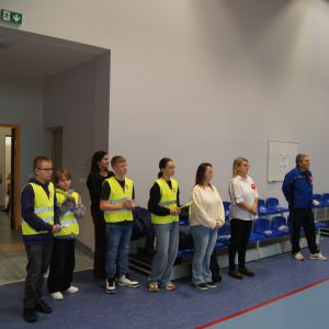 Podczas XVII Turnieju Piłki Siatkowej o Puchar Wójta Gminy Przystajń młodzi ambasadorzy bezpieczeństwa rozdawali wszystkim obecnym odblaski.