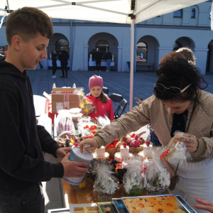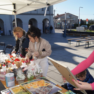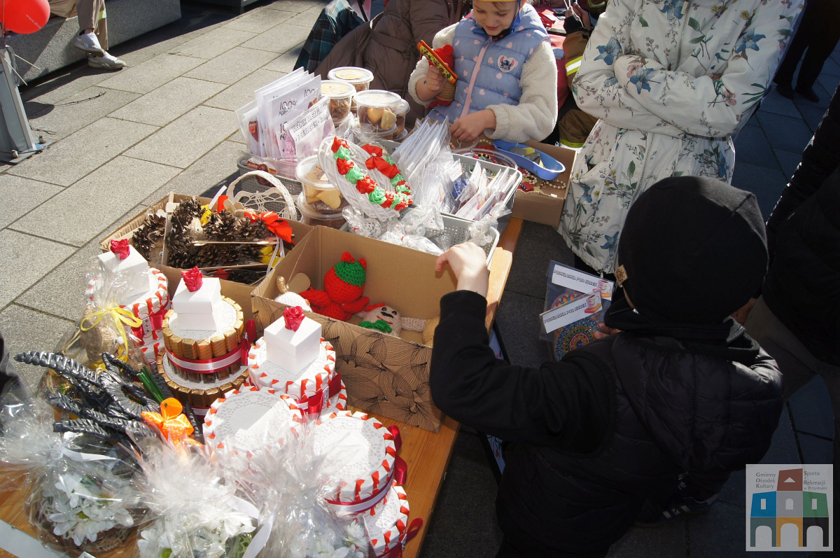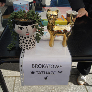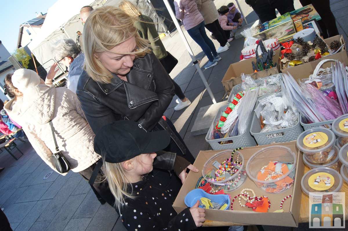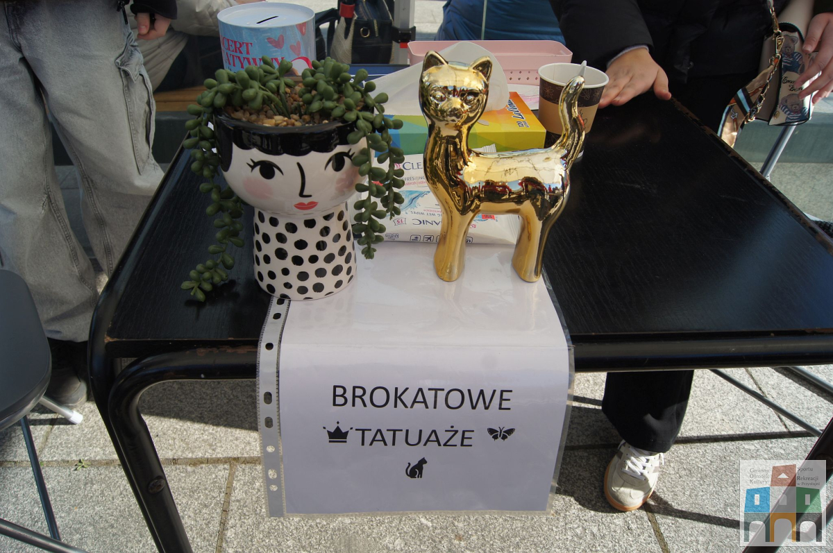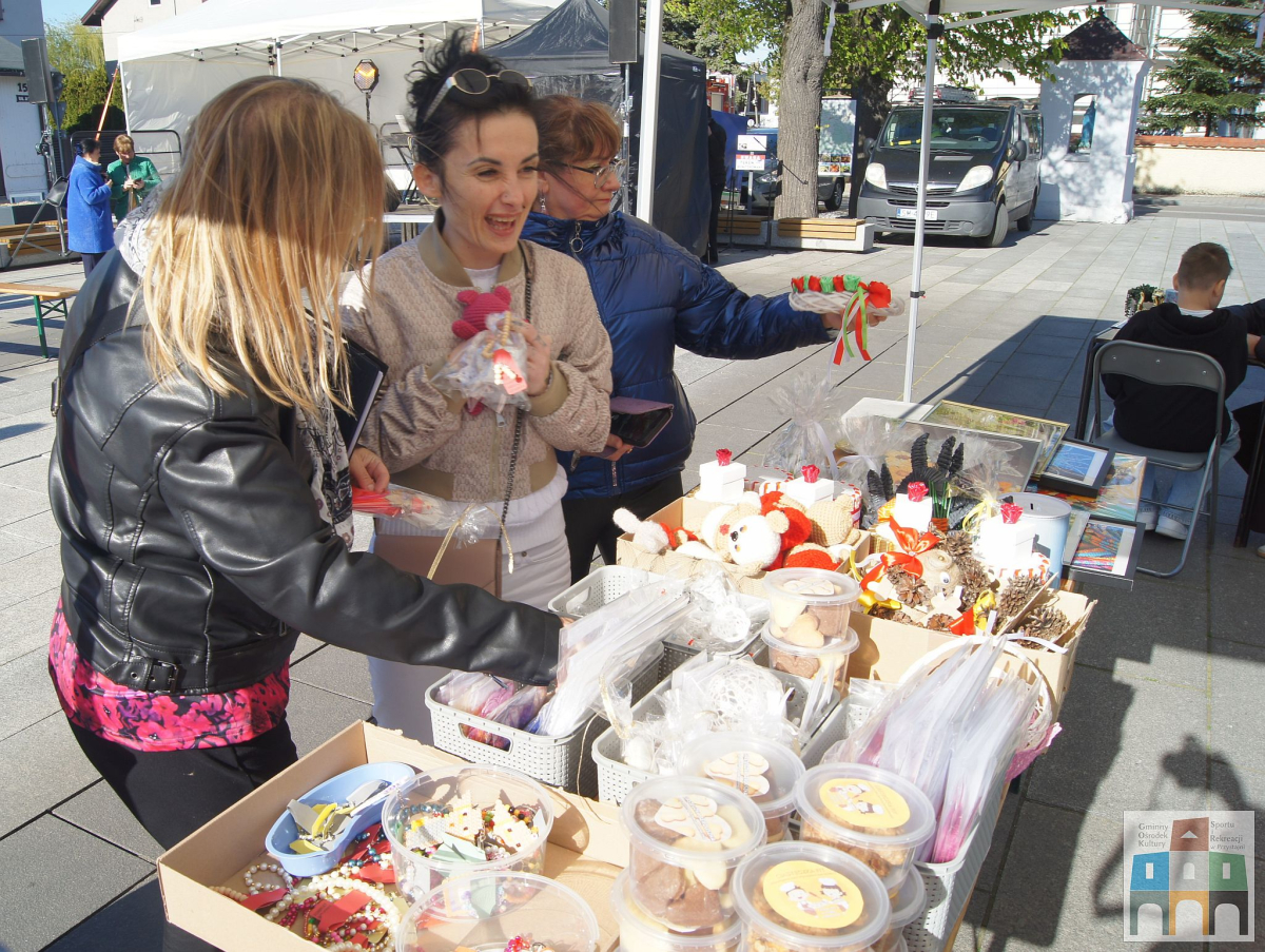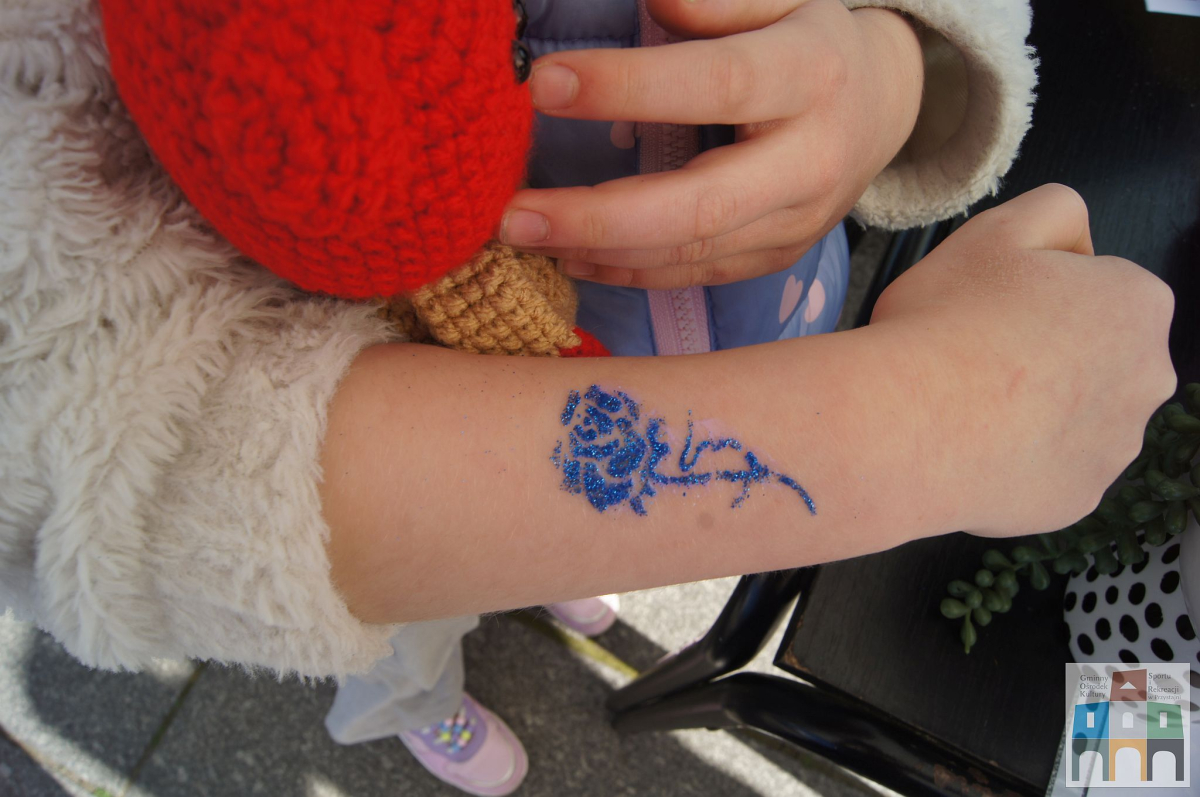 Bardzo licznie odwiedzanym stoiskiem był kiermasz rękodzieła, stworzonego przez dzieci i seniorki uczestniczące na warsztatach prowadzonych przez GOKSiR w Przystajni. Prace przepiękne, tworzone z ogromnym zaangażowaniem i pasją, a oddane z wielkim sercem. A obok stoiska można było zrobić sobie brokatowy tatuaż u najlepszej tatuażystki Leny.