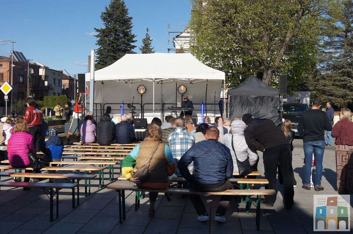 26.04.2026 r. Rynek w Przystajni zamienił się w scenę dobra, gdzie odbył się KONCERT CHARYTATYWNY „GRAMY DLA DARII”. Pomysłodawczynią tego pozytywnego „zamieszania” była ANA, która zebrała swoich muzycznych przyjaciół i wraz z Orkiestrą Dęta Gminy Przystajń zagrali dla Darii, a my jako GOKSiR w Przystajni przyłączyliśmy się do tego ważnego celu.