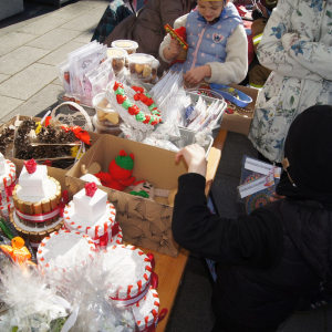 Przede wszystkim działała słodka kawiarenka z kawą, herbatą i przepysznymi, różnorodnymi domowymi wypiekami. Wszystkie Koła Gospodyń Wiejskich upiekły ciasta, za co serdecznie dziękujemy, że zawsze można na Was, kochane Panie liczyć. Dziękujemy również wszystkim, którzy indywidualnie dostarczyli wypieki na ten szczytny cel, a było ich naprawdę sporo. Ciasta przepyszne o czym świadczy to, że sprzedało się co do kawałka.